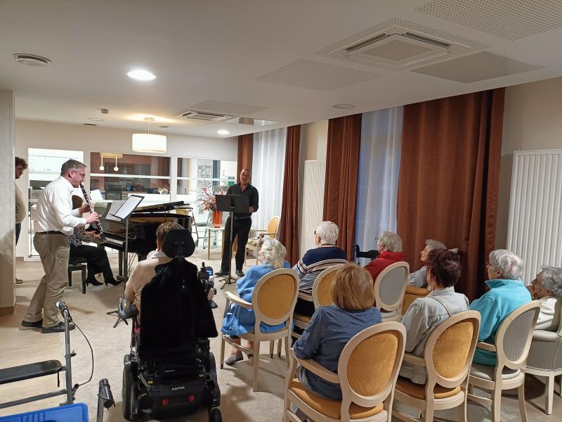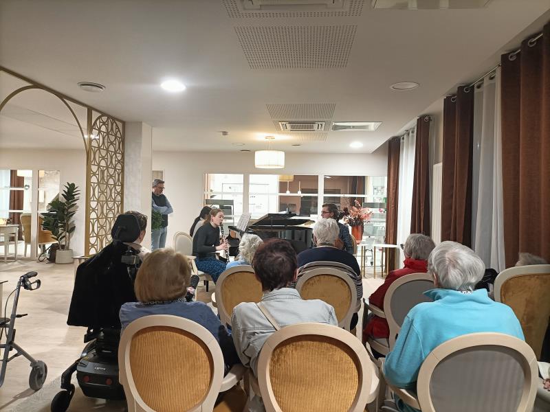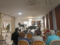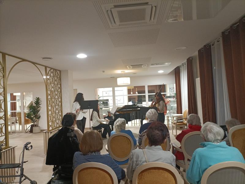 De la flute, du piano, du violoncelle, du violon et de superbe voix nous ont entrainé dans 45 minutes de pur bonheur auditif, que les résidents ont invité à revenir cette année ! BRAVO !