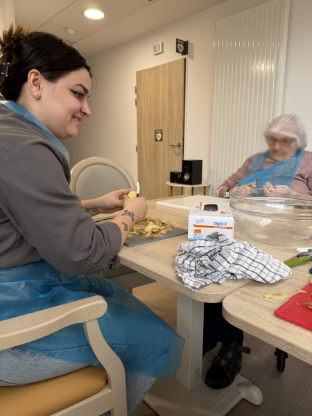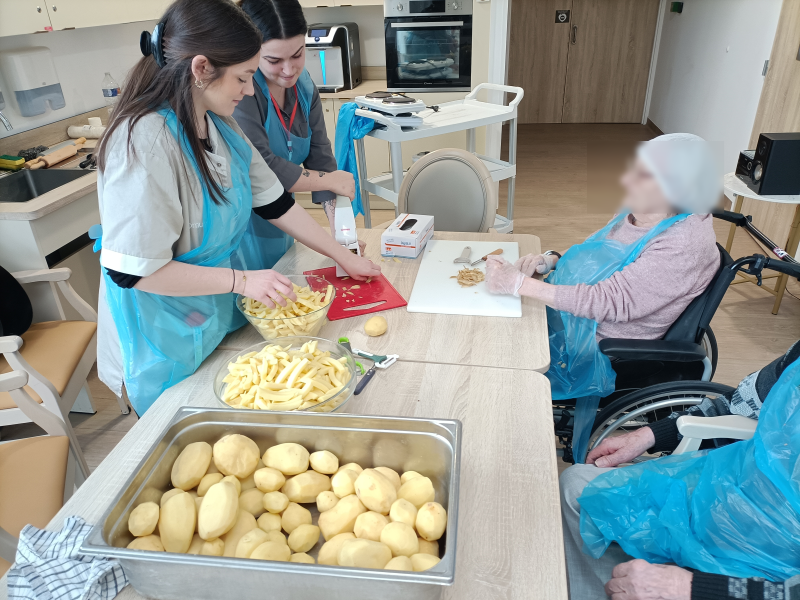 Ce matin, un groupe de résident s'est mis aux fourneaux pour préparer de délicieuse frites pour le repas en commun entre la Villa Garance et son accueil de jour.