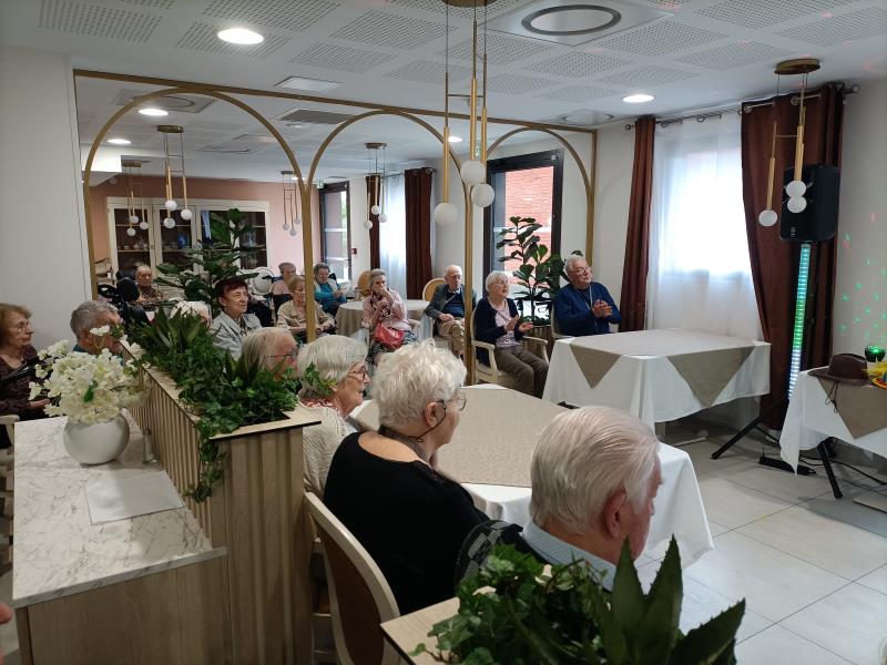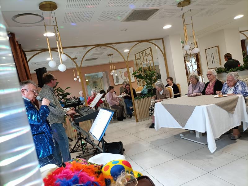 Hier après-midi, nous avons eu le plaisir de retrouver Philippe et Serge, deux de nos chanteurs réguliers, pour célébrer les natifs du mois d'avril ! L'un au clavier, l'autre au chant, notre duo d'amis nous a entrainé dans les plus belles chansons du répertoire français, tantôt festif, tantôt émouvant, pour mettre à l'honneur les anniversaires de ce doux mois d'avril !
