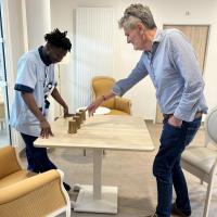 Publiée le 24/07/2024Nos résidents de l'unité de vie protégée ont pu profiter de notre nouvel équipement, la Tover Tafel. Un jeu de réalité virtuelle permettant de travailler l'activité physique, cognitive, sociale et sensorielle de nos résidents. Ils ont ensuite pu déguster leur goûter dans leur s [...] Lire la suite