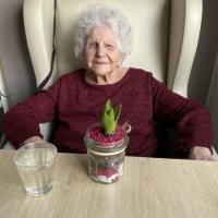 Publiée le 10/03/2022Les Résidentes ont eu un joli cadeau pour la fête des Mamies ! Une belle jacinthe, faite maison par les mains d'autres Résidents Mesdames étaient contentes de l'attention, et on désormais pour tache d'hydrater le bulbe afin qu'il deviennent une jolie fleur 🌷 On a hâte de voir le résultat ! Lire la suite