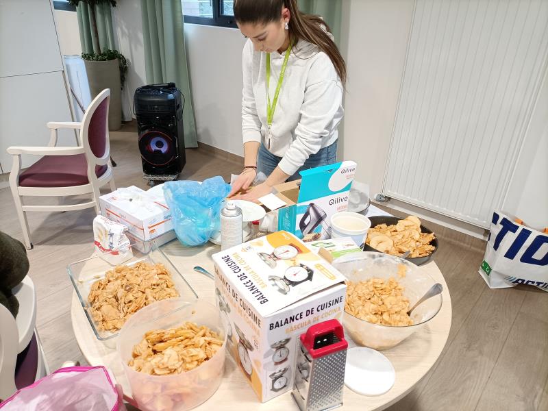 Sous la conduite de Liliane, notre bénévole, de Léa, notre soignante de l'accueil de jour et d'Hanna, Stagiaire en animation, nos aînés ont mis la main à la pâte, littéralement, pour confectionner ces délicieuses pâtisseries aux pommes.