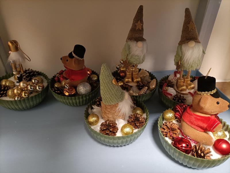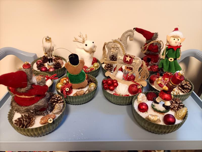 Les centres de tables et leurs sujets, préparés par Léa, Liliane, et les résidents de la Villa Garance, attendent sagement dans le bureau de l'animation de tous vous retrouver aux restaurant pour passer de bonnes fêtes tous ensemble !