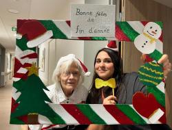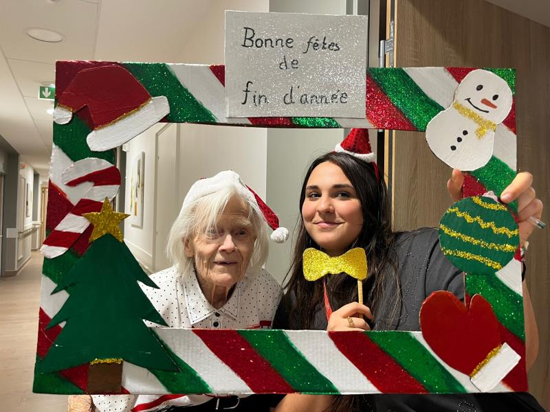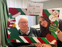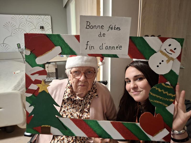 Dans le cadre de son projet, Lisa notre stagiaire en animation a organisé hier après-midi une séance photo avec les résidents du troisième étage. Elle a réalisé à cet effet un cadre photo ainsi que plusieurs accessoires, aidée d’Émeline, elle aussi stagiaire en animation.