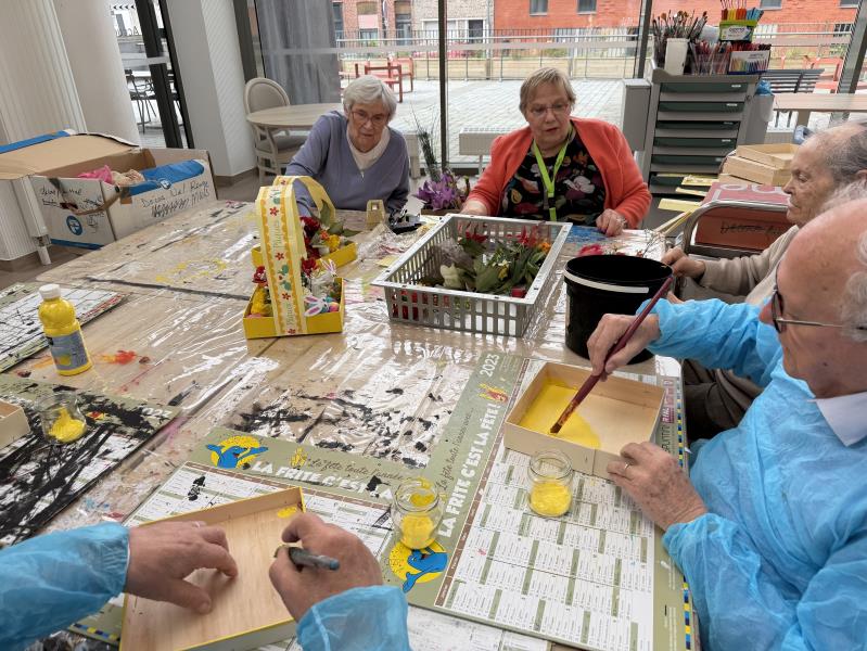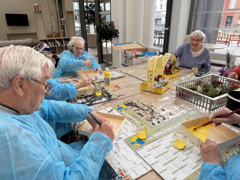 A la Villa Garance, ce même après-midi , aux côtés de Liliane et Léa , nos ainés ont eu le plaisir de participer à un atelier créatif autour des décorations pour le repas Pascal du 5 avril. Lors de cet atelier , nos résidents ont pu créer des petits paniers garni d'œufs et de fleurs.